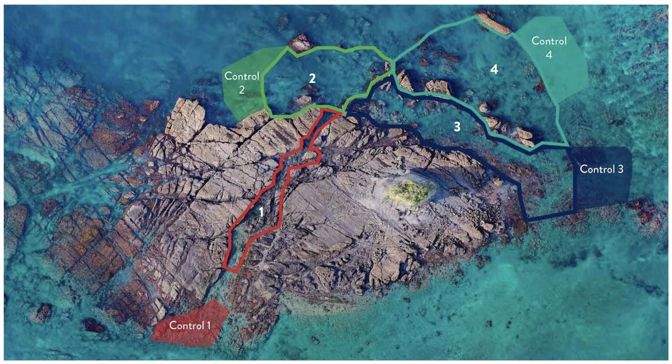 A one hectare restoration site boundary (with adjacent controls) was mapped with scientific support around the outer reef (see Figure 1), and the presence of kina barrens was verified through a series of geotagged (linked to satellite placement data) photos of the seafloor. To assist with community harvesting, the restoration site was divided into four main zones characterised by depth and reef type.
