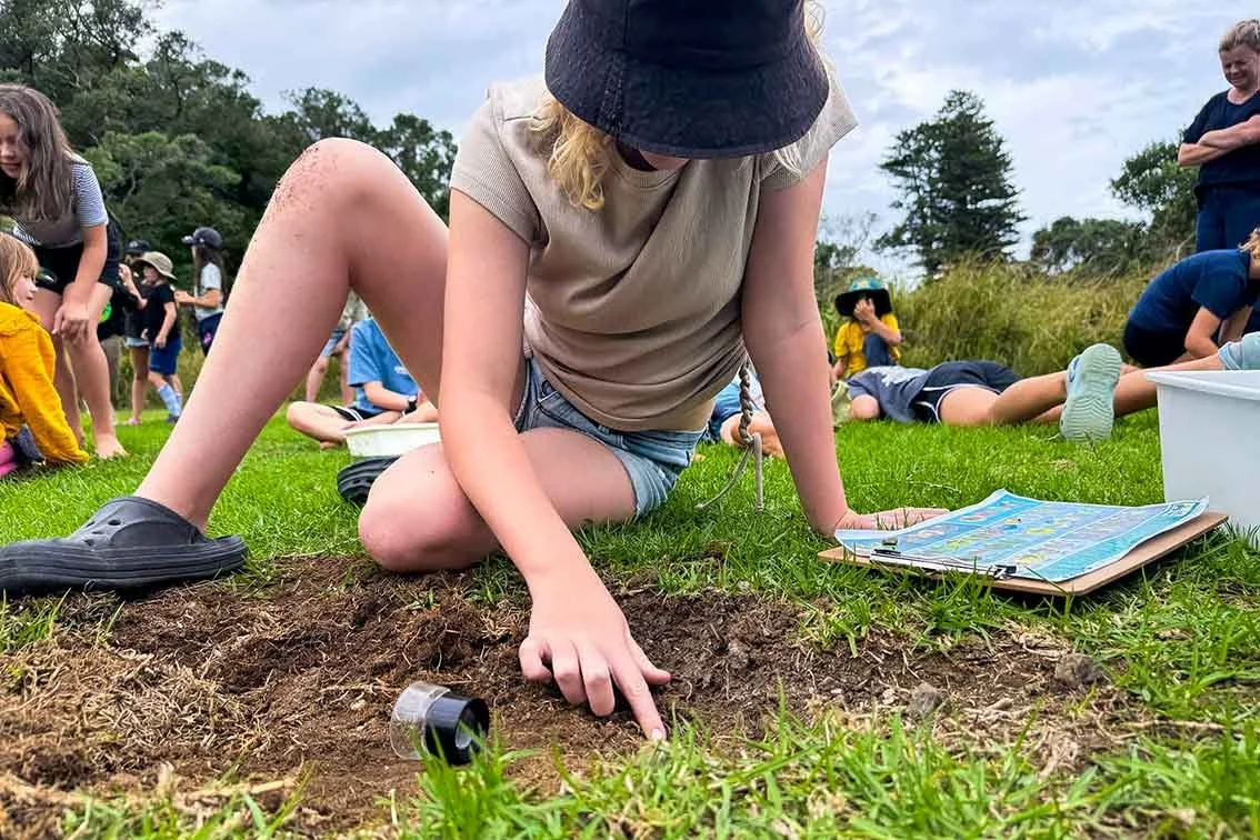 Tamariki from Leigh School, carrying out biodiversity surveys