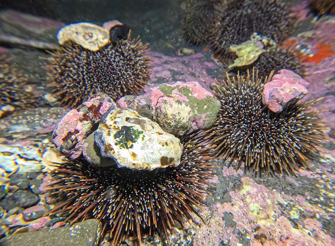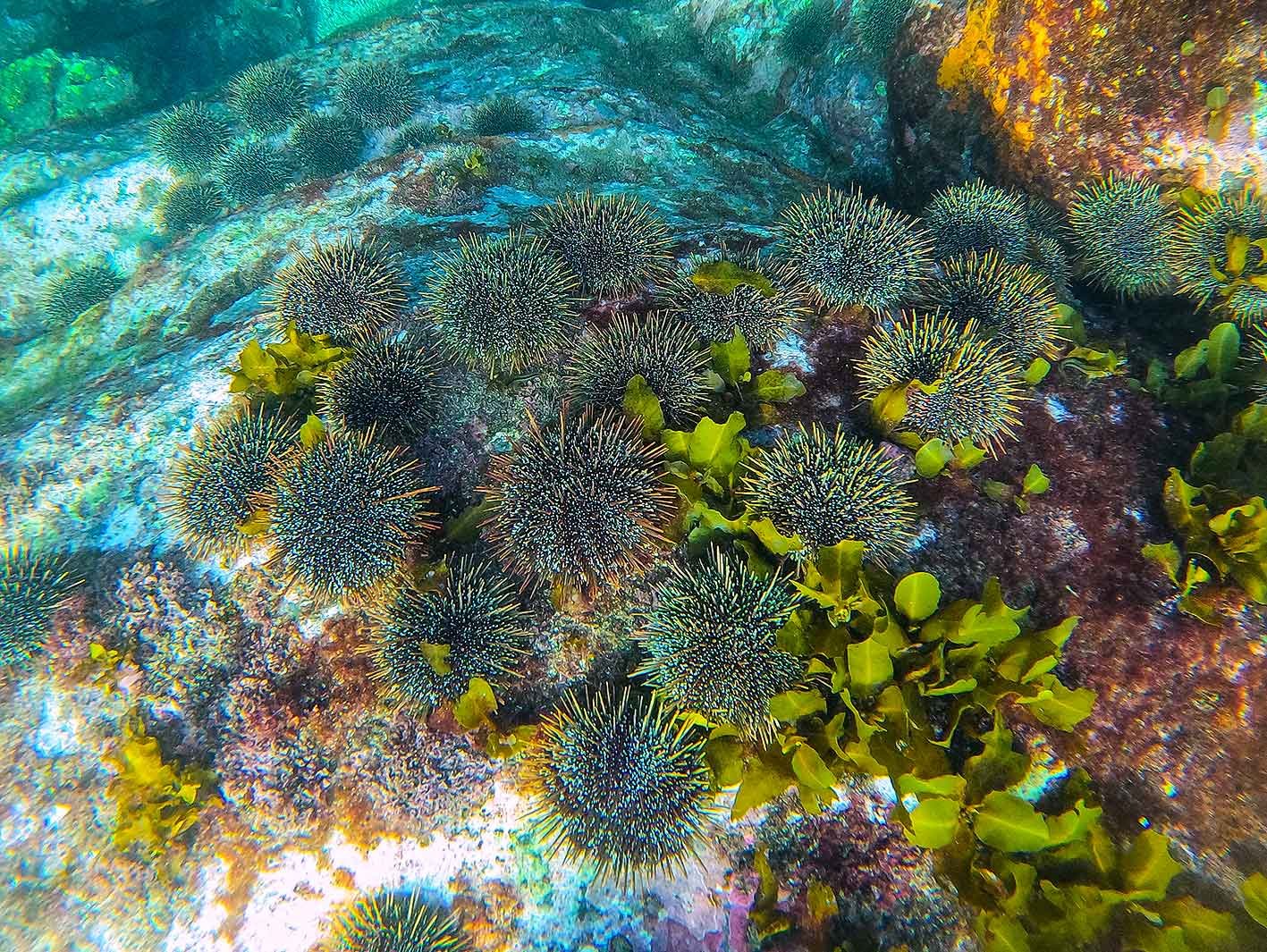 Kina resting on the reef at Te Kohuroa Matheson Bay.