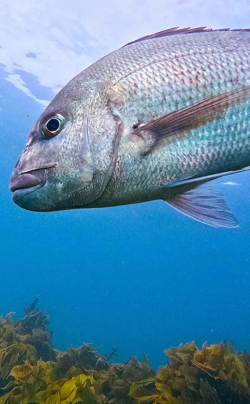 On the reef, kina are an essential part of the ocean’s food web (a complex, interconnected network of feeding relationships) and provide a food source for species such as tāmure (snapper) and kōura (lobsters). When these key predators are abundant, the balance of life at each stage of the food web remains stable. However, tāmure and kōura populations have significantly reduced in recent years due to the effects of overfishing, and kina numbers have grown exponentially because there are no longer enough predators to eat them. This has led to increased kina numbers, and in turn less kelp, creating what is commonly referred to as kina barrens. This ‘cause and effect’ reaction is known as a trophic cascade, and describes the collapse of the food web through many layers of the ecosystem. In areas where kina barrens exist, there is little to no seaweed or kelp coverage. The kina that live there do not have enough food and produce ‘skinny’ roe, and are often unwell.
